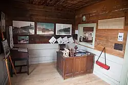The Gilead Station is a single story wood frame structure of modest size. It is three bays wide and one deep, with a gable roof. The entrance is in the center of the three bays, and is flanked by sash windows. The surrounds of the door and windows are stylistically similar, with flared elements on the outer edges of the side molding, and an upward projection on the lintel. The interior of the station is divided into two rooms, the doorway entering into the larger one, which fills the center and right of the building. The room to the left originally house the stationmaster's office. It is unknown what the original interior looked like, as it has been extensively altered for a variety of uses prior to undergoing restoration.[2]