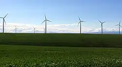 The Shepherds Flat Wind Farm, an 845 megawatt (MW) wind farm, began construction near Arlington in 2009, shortly after approval by state regulators. The wind farm was being built by Caithness Energy using General Electric (GE) 2.5 MW wind turbines, and it will supply electricity to Southern California Edison. In April 2011, Google announced they had invested $100 million in the project. The wind farm was estimated to have an economic impact of $16 million annually for Oregon.