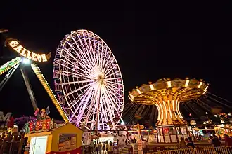 Gillian's Wonderland Pier is famous for its 144-foot (44 m) Giant Wheel, one of the largest Ferris wheels on the east coast.[12]