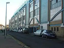 The main source of employment was at Chatham Dockyard, two-thirds of which lay within the boundaries of Gillingham. When it ceased to be a naval base in 1984, there was significant unemployment. A World Heritage Site application has been made for the Dockyard and its defences.[14] Since the 1980s, Gillingham has rebuilt its economic base and the Gillingham Business Park was set up 3 miles (4.8 km) from the town centre, to attract investments and diversify economic activity.[15] The business park and ice rink were an early commission for Grimshaw Architects.[16]