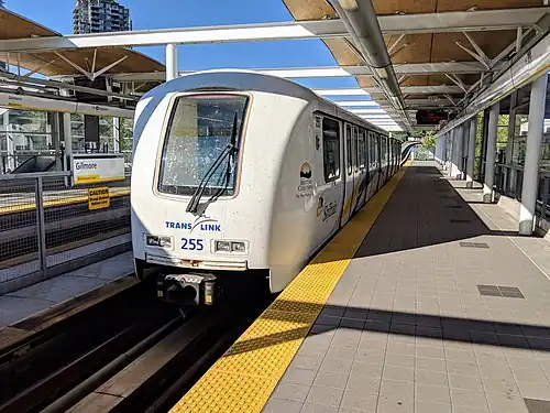 Gilmore is an elevated station on the Millennium Line of Metro Vancouver's SkyTrain rapid transit system. The station is located on Gilmore Avenue in Burnaby, British Columbia, Canada.