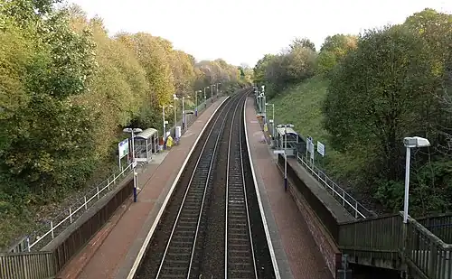 Gilshochill railway station is a railway station serving the Gilshochill, Maryhill and Cadder areas of Glasgow, Scotland. The station is located on the Maryhill Line, 31⁄4 miles (5 km) north west of Glasgow Queen Street. Services are provided by ScotRail on behalf of Strathclyde Partnership for Transport. When the station was opened by British Rail in December 1993 it was named Lambhill, being renamed Gilshochill on 24 May 1998 under Railtrack.
