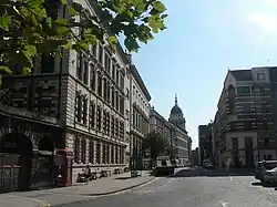 Giltspur Street is a street in Smithfield in the City of London, England, running north–south from the junction of Newgate Street, Holborn Viaduct and Old Bailey, up to West Smithfield, and it is bounded to the east by St Bartholomew's Hospital. It was formerly known as Knightsriders Street, from the knights riding at the tournaments in Smithfield.[1]