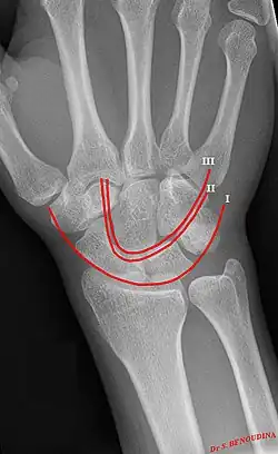 Gilula's lines are three arcs drawn on an AP radiograph of the wrist used to assess the alignment of the carpal bones.[1]