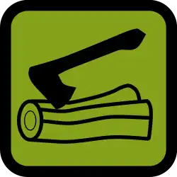The axe-and-log logo was conceived by Francis Gidney in the early 1920s to distinguish Gilwell Park from the Scout Headquarters. Gidney wanted to associate Gilwell Park with the outdoors and scoutcraft rather than the business and administrative headquarters offices. At Wood Badge courses, axe blades were masked for safety by being buried in a log. Seeing this, Gidney chose the axe-and-log as the totem of Gilwell Park.[7] This logo came to be strongly associated with Wood Badge leader training and is still used on certificates, flags and other items.[8]