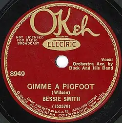 - ^ Columbia matrix W152578. Gimme a pigfoot, Discography of American Historical Recordings. Retrieved 9 November 2022