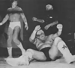 - ^ a b Kristian Pope & Ray Whebbe (2003). The Encyclopedia of Professional Wrestling: 100 Years of History, Headlines & Hitmakers (2nd ed.). Krause Publications. ISBN 978-0-87349-625-4.