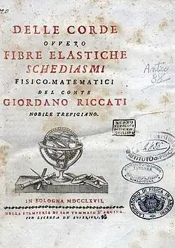 - ^ G. Riccati (1782). "Delle vibrazioni sonore dei cilindri". Mem. mat. fis. soc. Italiana. 1: 444–525.