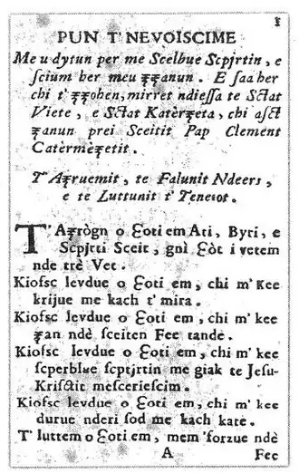 - ^ "Über die Priesterausbildung im katholischen Nordalbanien während der Türkenzeit". Wir sind die Deinen: Studien zur albanischen Sprache, Literatur und Kulturgeschichte, dem Gedenken an Martin Camaj (1925-1992) gewidmet. Otto Harrassowitz Verlag. 2010. pp. 507–8. ISBN 978-3-447-06221-3. Retrieved 19 October 2011.