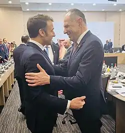 Gerapetritis met with the President of France, Emmanuel Macron, at the conference on Syria in Paris on 13 February 2025.[82]