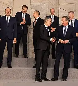 On 28 and 29 November 2023, Gerapetritis attended the NATO Foreign Ministers summit held in Brussels.[64] He focused on NATO-Ukraine and on the support that Greece provides to Ukraine, as well as reffirming the support of Greece to Ukraine.[64] Additionally, he emphasised the role of stability that Greece provided in the Western Balkans, as well as discussing the threats that NATO faces from the South and also following developments in the Middle East.[64]