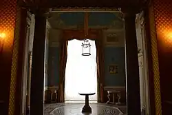 In May 1734, King Charles of Bourbon entered Naples, the city became, once again, the capital of an autonomous kingdom of Naples. In Naples, Giovanni Antonio de Medrano was employed in 1734, without knowing the scope of his work, on the Royal Palace of Naples built by Domenico Fontana. Between 1734 and 1738 he supervised the renovation and expansion works of the viceregal palace (1734).[8] Giovanni initially focused on the king's apartments facing Piazza della Repubblica. Although construction was completed in 1740, by 1738—the year of Charles's wedding to Maria Amalia of Saxony—they were nearly finished. The palace was then organized around two main suites: the King’s and Queen’s apartments.[13]