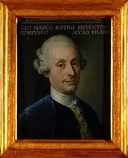 He was born in Florence and studied at the Naples Conservatorio della Pietà dei Turchini. At the conservatorio, he studied composition under the guidance of Leonardo Leo, harpsichord with Nicola Fago and violin with Vito Antonio Pagliarulo. He graduated in 1744, but stayed to teach for several years. In 1748 he moved to Prague and joined the Locatelli ensemble. In the beginnings of his career he devoted himself mainly to the kapellmeister activities, and composed predominantly the cembalo sonatas.[1] Rutini performed his first "Prague opera", Alessandro nell´Indie, in 1750. Another opera, Semiramide riconosciuta, was dedicated to the "nobility of the Czech Kingdom".[1] Rutini later moved with Locatelli and his group to Russian St. Petersburg. He composed there the comic operas, mainly to the librettos of Carlo Goldoni. He was also the piano teacher of Catherine II, the future Russian empress.[1] In the early 1760s he returned to Florence, and continued composing operas. He married in April 1761. He continued to conduct performances at the Teatro degli Intrepidi in Florence until 1784, but at the same time he devoted himself only to composing oratorios and keyboard sonatas; after 1780, he composed mainly church music. He was a friend and correspondent of Padre Martini.