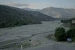 It is the left tributary of the Kura. The river is 88 km (55 mi) in length, with a basin area of 727 km2 (281 sq mi).[1] The water discharge is 8.9 m3/s (310 cu ft/s).[2]