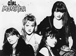 Girl Monstar formed in 1988 in Melbourne with the line-up of Damian Child (Feline Touch) on bass guitar and vocals; Anne McCue (Vertigo) on lead guitar, slide guitar and vocals; Sherry Valier (aka Sherry Rich)(Obscure Alternatives, Cactus Fever) on lead vocals, harmonica and rhythm guitar; and Ritchie Hine on drums. After a few months Hine left the band to join the newly formed Screaming Tribesmen and was replaced by Sue World (Wet Ones).[1][2] The group signed with Timberyard Records and in October 1989 issued their debut double-A-sided single, "Surfing on a Wave of Love" / "He's Hell".[1][2] Both tracks are written by Valier.[3][4]