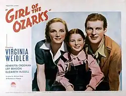 Girl of the Ozarks is a 1936 American drama film directed by William Shea and written by Stuart Anthony, Maurine Babb, John Bright, Michael L. Simmons and Robert Tasker. The film stars Virginia Weidler, Henrietta Crosman, Leif Erickson, Elizabeth Russell, Russell Simpson, and Janet Young. The film was released on June 12, 1936, by Paramount Pictures.[1][2]