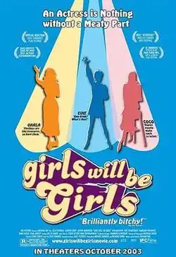 Girls Will Be Girls is a 2003 comedy film written and directed by Richard Day.[1] Starring Jack Plotnick, Clinton Leupp, and Jeffery Roberson as three actresses at various places in their careers,[1] the film is a parody of Hollywood-related movies such as Sunset Boulevard, All About Eve, What Ever Happened to Baby Jane?, Mommie Dearest, and Valley of the Dolls.