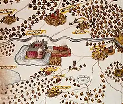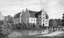 Today's estate was founded by Peder Oxe til Nielstrup who built the manor from 1547 to 1575. It originally consisted of four interconnected red-brick wings, three storeys high with thick outer walls, a number of loopholes and large stepped gables. A protruding gate tower stands at the centre of the left wing. The fourth wing, now demolished, housed a chapel.[8]