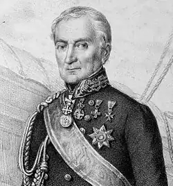 Captain of the vessel in 2nd rank, he was commander of the corvette Aurora operating in the waters off Tunisia (5 May - 2 June 1830), and then of the frigates it: Commercio di Genova (1832) and Regina (1839-1840).[2] Having become rear admiral in 1838, he was made Senator of the Kingdom of Sardinia (3 April 1848).[4] After the outbreak of the first war of independence he assumed command of the squadron sent to the Adriatic to help the Republic of Venice.[5] During the this assignment, he had some disagreements with rear admiral it:Giorgio Mameli, vice-commander of the naval squadron.[3]: 421 On 20 October 1848 he was awarded the title of Commander of the Order of Saints Maurice and Lazarus.[2]