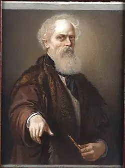 This work resulted in his becoming a professor at the Academy in 1844, to replace the late Benvenuti. During this period, he focused on commissioned portraits, including politicians such as Bettino Ricasoli, and writers such as Giuseppe Giusti. In 1853, a portrait of the recently deceased Austrian general, Julius Jacob von Haynau, created some controversy, as he had been involved in violently suppressing some of the Revolutions of 1848 in the Italian states.[3] His last exhibition was at the Exposition Universelle of 1855, where he presented several paintings with religious themes.