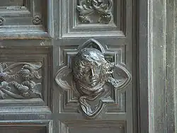 Cassioli sculpted the right-hand bronze door for Florence Cathedral[3] which brought about years of criticism and harassment to the point where he created a self-portrait depicting himself being suffocated by a snake.