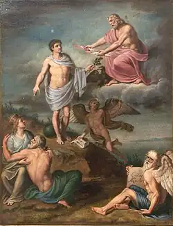 The climate of Milan affected his delicate health, and he decided to return to Rome. There he renewed contacts with Ferdinand IV, who proposed to him the opening of an academy and also commissioned a ceiling in one of the rooms in the royal palace at Caserta. Neither of these projects was realized by the artist, who was unwilling to leave Rome. In 1815 he published a letter on colour and in 1817 an essay on the same subject; during the same period he wrote a plan for a new Accademia di Belle Arti. Francesco Cancellieri wrote a posthumous biography of the painter in 1824.[1] Among his pupils in Rome was Giuseppe Gandolfo and in Sicily Giuseppe Mazzarese.[2]