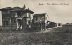 Palanti was heavily involved in the development of the seaside resort Milano Marittima, north of Cervia. Originally an area of uncultivated coastal pine forests, in 1907 the Municipal Administration of Cervia ceded a vast area along the coast to the Maffei company, allowing them to build villas, parks and gardens in order to create a resort town. The Società Milano Marittima per lo sviluppo della spiaggia di Cervia (Milano Marittima Society for the development of the beach of Cervia) was created in 1911 to progress development, which Palanti quickly joined.[8] He was an advocate of the garden city model, influenced by British urban planner Ebenezer Howard.[9] His vision was of an urban project which would create a new city in which tourist accommodation blended with the surrounding nature. Designed to appeal to the middle class, it consisted of a series of decadent art nouveau villas set within the pine forest. In 1912 he drew up the master plan for the new municipality of Cervia[10] and the plans for the first villas on the coast.