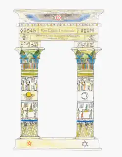 Domenico Bocchini, heir to the Neapolitan Egyptian Hermetic Tradition of the XVIII cenutry and XIX century centuries, co-founded the Egyptian Osiridean Order with Filippo Lebano. Giustiniano's family's close relationship with Bocchini led to his initiation into the Traditional Egyptian Rite at the Folgore Lodge in 1853, where he later served as Grand Master from 1893 to 1910.[11] Along with other hermetists such as Giuseppe Ricciardi and Domenico Angherà, he revived the Hermetic tradition of Alexandrian Egyptian origin, giving rise to the Egyptian Grand Orient.[11] In 1873, the archive of the Egyptian Grand Orient was moved to Villa Lebano.[11] He was the first supervisor of the Masonic lodge of the Grand Orient at the Sebezia Lodge and the Grand Master of the secret Christian Hermetic order of the Rosicrucians.[12] As an esotericist, he was the mentor under Giuliano Kremmerz and studied under Eliphas Levi and was a member of the Theosophical Society.[13]