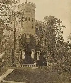 The castle was built in the Beverly neighborhood of Chicago from 1886 to 1887 under the direction of Robert C. Givins. He was a successful real estate developer.[1][2] It is a three-story structure with three crenelated towers.[3] Givins lived in the castle from 1887 to 1894. From 1895 to 1897, the castle housed the Chicago Female College. Beverly Unitarian Church purchased the building for US$14,000 and has used it since 1942. It is the only building in the city described as a "castle."[4]