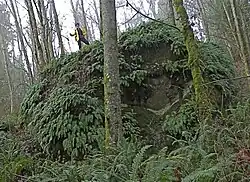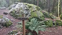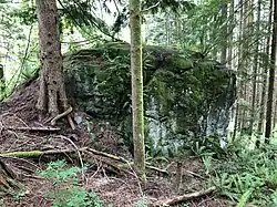 | Talus Rocks, a collection of piled erratics in Tiger Mountain State Forest on Tiger Mountain,[38][39][40] forming rock caves (called "Devil's Dens" in New England[41]) said to be among the largest in Washington.[42] | c. 12 feet (3.7 m) | |
