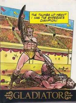 Gladiator is a fighting video game published by Domark Limited for the 48K ZX Spectrums in 1985. Ports for the Amstrad CPC, Commodore 64 and 128K ZX Spectrums were released in 1986.