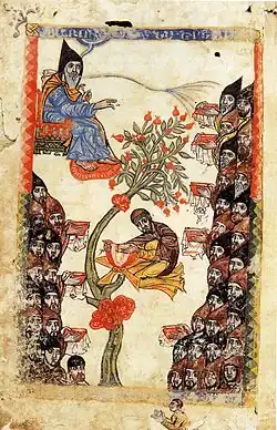 The university grew out of the monastic center of learning of the Aghberts or Gladzor Monastery in the region of Vayots Dzor.[4] It flourished under the patronage of the Orbelian and Proshian noble families.[4][5] Gladzor had at least nine professors and around fifteen lecturers.[5] The university's longtime head was Esayi of Nich (Nchetsi), who led the university until 1331.[4] He was succeeded by the head teacher Tiratur.[4] The noted miniature painters Toros Taronatsi, Avag and Momik taught and painted at Gladzor.[4]