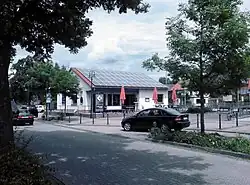 The station has two platform tracks, a bus stop, a parking area and barrier-free access.[7] It is located on the eastern outskirts of Glan-Munchweiler, with the railway line running parallel to Bahnhofstraße. To the north of the station area is the Haupstraße (main street) coming from the west, to the east of the line is Namen Mühlstraße. Just south of the entrance building there is a parking area for camping vans and the local volunteer fire service.[8] To the south of the station area, federal highway 423 crosses the railway line. East of the station is the district of Bettenhausen. The Glan-Blies Way cycling and hiking trail passes just to the east of the station, running to the south along the former Glan Valley Railway to Waldmohr and to the north over long sections of the now dismantled second track of the line to Kusel. In addition, the station is the starting point of the Barbarossa cycling trail, running to the west.