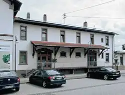Glan-Münchweiler station (officially called Glanmünchweiler until 1900[4][5] and also from 1943 to 1947[6]) is the station of the town of Glan-Münchweiler in the German state of Rhineland-Palatinate. It is classified by Deutsche Bahn as a category 6 station[1] and has two platforms and sidings. The station is located in the network area of the Verkehrsverbund Rhein-Neckar (Rhine-Neckar Transport Association, VRN). The address of the station is Bahnhofstraße 3.[7]