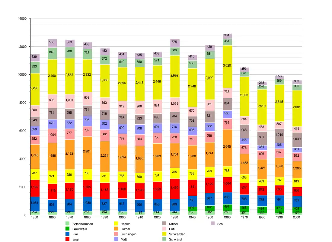 | Localities | Betschwanden, Braunwald, Diesbach, Elm, Engi, Haslen, Hätzingen, Leuggelbach, Linthal, Luchsingen, Matt, Mitlödi, Nidfurn, Rüti, Schwanden, Schwändi, Sool. |