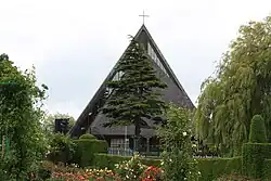 A timber church, which originally stood on Berkeley Road, was moved to a riverside site on Botanic Avenue early in the twentieth century; the altar in this church was from Newgate prison in Dublin. It served as the parish church until it was replaced, in 1972, by a structure resembling a pyramid when viewed from Botanic Avenue. The previous church was known locally as "The Woodener" or "The Wooden" and the new building is still known to older residents as "The new Woodener" or "The Wigwam". The church underwent some refurbishment work inside and in its grounds and car park during the first half of 2011.