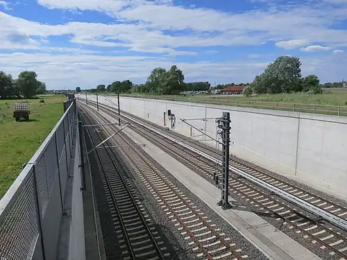 A new halt is planned to the east of the intersection of the line with the A113 on the route of a newly planned road. It would consist of two side platforms and two associated station forecourts and serve regional traffic. The construction of the new road is scheduled for 2019.[17]