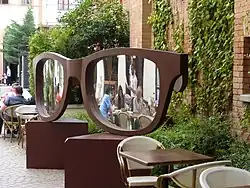 Giordano's colleague Friar Alessandro della Spina of Pisa (d. 1313) was soon making eyeglasses. The Ancient Chronicle of the Dominican Monastery of St. Catherine in Pisa records: "Eyeglasses, having first been made by someone else, who was unwilling to share them, he [Spina] made them and shared them with everyone with a cheerful and willing heart."[38] Venice quickly became an important center of manufacture, especially due to using the high-quality glass made at Murano.[39] By 1301, there were guild regulations in Venice governing the sale of eyeglasses[40] and a separate guild of Venetian spectacle makers was formed in 1320.[39] In the fourteenth century, they were very common objects: Francesco Petrarca says in one of his letters that, until he was 60, he did not need glasses,[41][42] and Franco Sacchetti mentions them often in his Trecentonovelle.