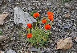 Glaucium grandiflorum is found in disturbed habitats and shrub-steppes. It is found in the Irano-Turanian floristic region and is a glycophyte.[5]