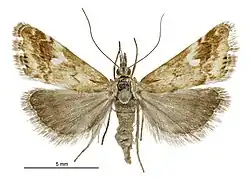 - ^ a b c Edward Meyrick (May 1883). "Descriptions of New Zealand Microlepidoptera. I and II. Crambidae and Tortricina". Transactions and Proceedings of the New Zealand Institute. 15: 17. ISSN 1176-6158. Wikidata Q111013914. This article incorporates text from this source, which is in the public domain.
