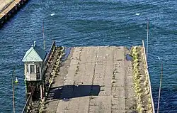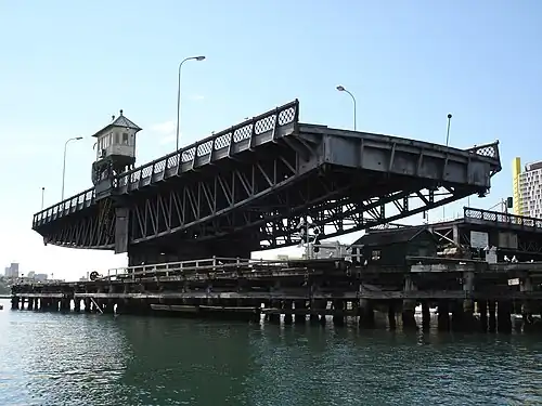 The Glebe Island Bridge is a heritage-listed disused swing Allan truss road bridge that carried Victoria Road (as Bank Street) across Johnstons Bay, located in the inner city Sydney suburb of Pyrmont, New South Wales, Australia. The bridge, that connected Rozelle to Pyrmont by road, is one of the last remaining swing bridges of its type in Australia and in the world. It was designed by Percy Allan and built from 1899 to 1903 by Bridges Branch of NSW Public Works Department. It is also known as RMS Bridge No. 61. It was added to the New South Wales State Heritage Register on 29 November 2013[1] and was listed on the (now defunct) Register of the National Estate on 19 April 1989.[2]