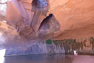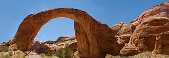 The geology of the area is dominated by the Glen Canyon Group, consisting of the Navajo Sandstone, Kayenta Formation, and Wingate Sandstone.[19] The entire stratigraphic section includes rocks dating from the Cretaceous to Pennsylvanian periods.[20]