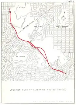 - ^ Crosstown Freeway: Preliminary Report and Plans - San Francisco, California (Report). De Leuw, Cather, & Company. February 1958. OCLC 34765956. The planned Crosstown Freeway would have traversed Glen Canyon Park; see "Plate IV". August 1957.