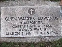 Glen Walter Edwards (March 5, 1916–June 5, 1948) was a test pilot for the United States Air Force. He is the namesake of Edwards Air Force Base.