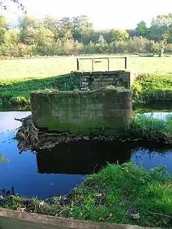 The pedestrian 'Auld Brig' across the Carmel water in Kilmaurs was built to replace stepping stones in 1824. It has been the scene of two deaths.[30] Both Beattie[53] and the Kilmarnock Glenfield Ramblers refer to Murdock's or Murdoch's iron bridge over the Carmel Water near Kilmaurs-Glencairn church as being the oldest iron bridge in Scotland. It was erected following a 1d subscription from each of the house-houlders of Ayrshire. The council demolished it in around the year 2000 and replaced it with a wooden bridge. The bridge over the Craufurdland Water at Craufurdland was built by Mr. Craufurdland, using the balusters from the original part of the battlements of Cessnock Castle, which had originally been given to Captain Whyte of The Cottage.[54]