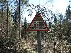 Since 1900, much of the Glen of Imaal (5,948 acres) has been used as an army artillery range. Because of this, caution is advised when attempting to use areas within the army range,[5] and notices are posted as to when the army are on field exercises.[6][7]