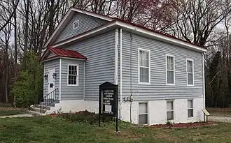 The Glendale School or Glendale Methodist Sunday School was located in the basement of the church and is considered one of Camden County's oldest public schools.[5][6] The school was started by the following Glendale village members: Richard Stafford, Catherine Engle, Nixon Davis, Joseph C. Stafford, Jesse Patterson, Israel Riggins, Montgomery Stafford, and Theodore Bishop.[3][4] There was a story passed down about the school that one of its founding members, Alexander Cooper, originally built the school in support of the prohibitionist cause, especially because there was a nearby tavern constructed down the street from the church.[6][4]