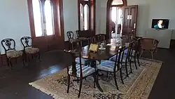 Deuchar had two suites of furniture made at Ebenstons in Queen Street, Brisbane, for the drawing and dining rooms. The fact that local materials and a local manufacturer were used was publicised in the Brisbane Courier in August 1868. Reports of the cost of the house vary between £5-12,000, and a gala opening party was held on 16 September 1868. The Deuchars hosted many social events during their time at Glengallan, and house guests included Governor Bowen and his family. Deuchar had envisaged the ground floor rooms as drawing room (north) and ball room (south), but were actually used as drawing room (south) and dining room (north) with bedrooms on the first floor.[1]