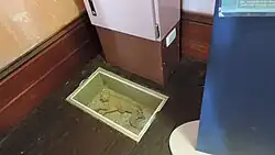 The drawing room originally had a white marble fireplace surround with relief carving of fruit, and the dining room had a black marble fireplace surround, both of which have been removed. The main bedroom, on the south, has a cedar fireplace surround and evidence of a shelving unit which was located between the chimney breast and adjacent wall but was probably not an original fitting. The adjacent ante-room housed a bathroom, and surviving evidence include vertically jointed timber panelling and a cedar surround for a shower rose. The bathroom originally housed a slate bath and flushing toilet. The northern bedroom has a vertically jointed timber partition wall which divides the room in two but which does not reach the ceiling height. This room had a cedar fireplace surround which has been removed, but the register grate is in place. The adjacent ante-room is thought to have been a nursery or dressing room.[1]