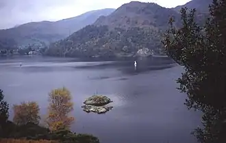 ![]() Glenridding Dodd, seen from the other side of Ullswater, showing Stybarrow Crag by the shore | |